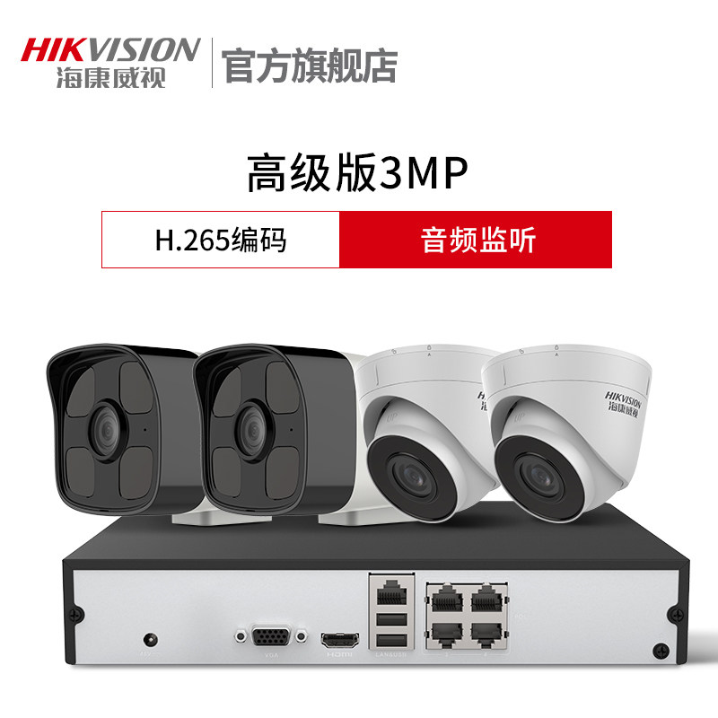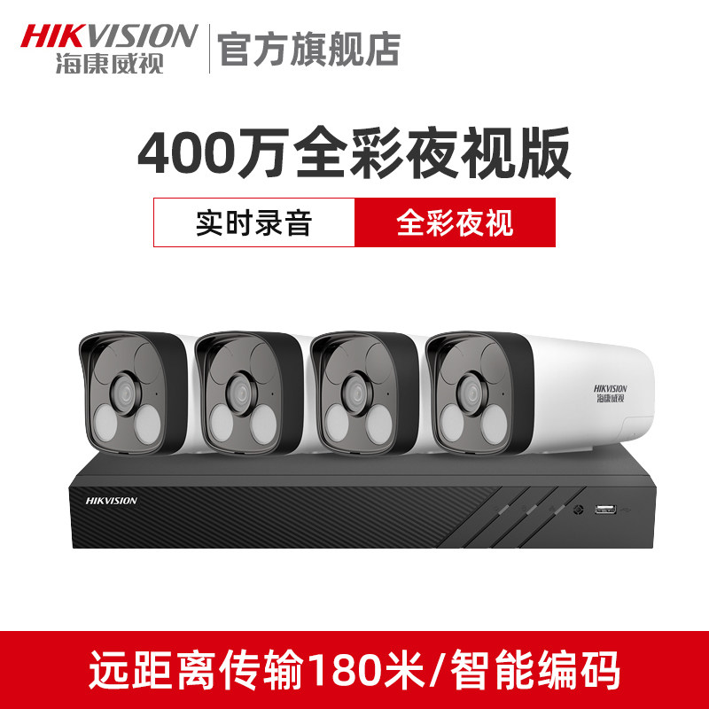 海康威视监控器全套设备套装8路poe商家用高清夜视室外摄像头超市